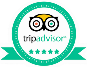 Logo di TripAdvisor con un'icona di un gufo stilizzato e cinque stelle sotto.